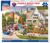 Summer has arrived. Plans have been made. Clothes and toys packed. The neighborhood notified of their departure. Friends arrive to see them off and interrupt the loading of the back of the family station wagon. Dad and his friend try to map the most direct path while his wife offers mom snacks for the drive. The son is excited to go but the daughter is sad to leave her friends for the summer. A baby runs off some energy by chasing the family dog down the sidewalk. Designers Lena Pigareva and Pinkerton Road take us back to our childhood vacations before GPS, large family cars, and the ease of air travel with this 1000 piece jigsaw puzzle. Finished size 24" x 30".