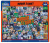 All the classics have arrived. Some may have scared you; some may still scare you. Make sure you work on this during the day with all the lights on. Designer James Mellett may bring back some memories you can laugh at now but may not have been funny at the time in this 1000 piece collage style jigsaw puzzle. Finished size of 24” x 30”.