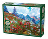 Where Gods Reside by Domik Modlinski captures the breathtaking beauty of alpine wilderness in this 1000 piece puzzle. Brilliant red wildflowers bloom across rocky slopes beneath a sweeping view of mountain peaks and vibrant blue skies. Cobble Hill’s random cut pieces keep puzzling dynamic, while the linen print finish enhances the texture and color of Modlinski’s bold brushstrokes. A stunning landscape puzzle that celebrates nature, adventure, and artistic mastery.