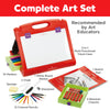 Recommended by art educators, this portable art studio is the perfect gift for young artists. The 30+ piece set is filled with premium quality Faber-Castell art materials. Multi-functional surfaces include a chalkboard, a white wipe board and a drawing easel. Designed with storage in mind, all the materials fit neatly inside when not in use.