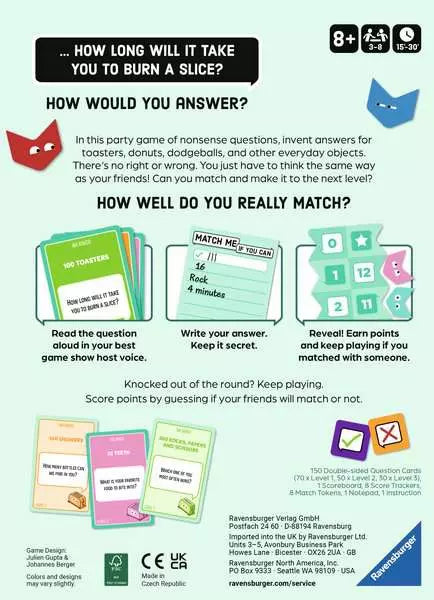 In this party game of nonsense questions, invent answers for toasters, donuts, dodgeballs, and other everyday objects. There’s no right or wrong. You just have to think the same way as your friends! Can you match and make it to the next level?