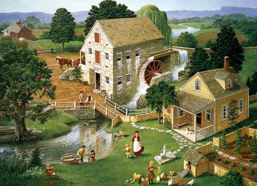 The Four Star Mill is humming with activity. A grand, but simple life of feeding the chickens, sailing toy boats, taking a walk in the green grassy fields, tending to the horses, and listening to the calming sound of the water wheel. A beautiful life!