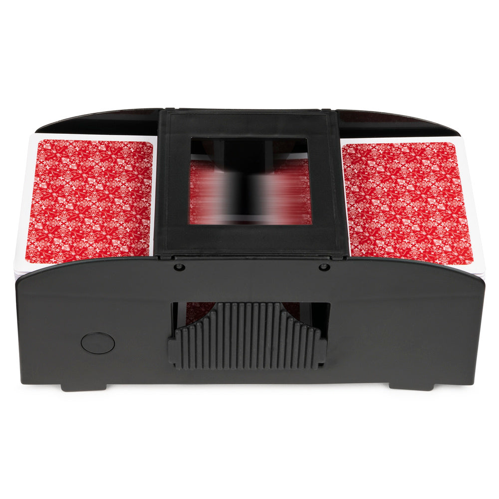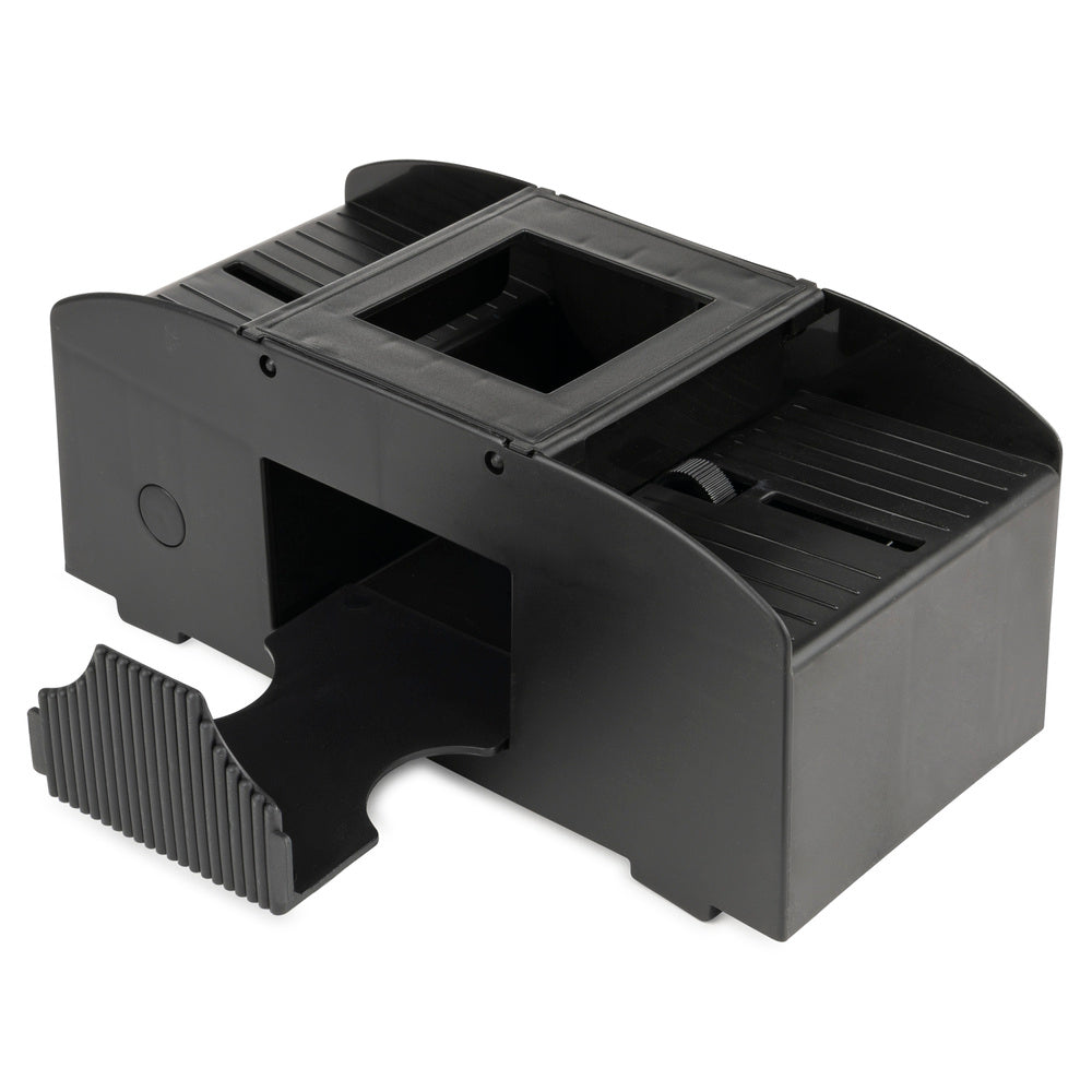 Save the time and hassle of shuffling and get straight to playing your hand by using the Automatic Card Shuffler. With the Automatic Card Shuffler, you can completely shuffle one or two decks of playing cards in just seconds. Spend more time playing and less time shuffling! Requires 4 x AA batteries (not included). Playing cards not included.
