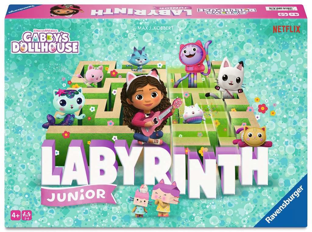 Gabby and her cat friends have hidden in the corridors of the Junior Labyrinth. Who can find them? In each turn, the square path cards on the game board are moved: new paths are created, sometimes dead ends are formed. Whoever still keeps an overview will quickly find their way to the respective sought-after figures. Whoever then finds their way out of the labyrinth first wins. Gabby’s Dollhouse Junior Labyrinth is a search and slide game with a brilliantly simple and unique game principle! Simple rules provide plenty of fun and many happy rounds of play in the family. The junior edition is already suitable for children aged 4 years and up. Each game runs differently due to the random arrangement of the path cards. So limitless fun is guaranteed.
