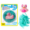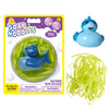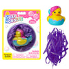 Includes a collectible rubber "duck" sitting on a nest of soap "noodles" that dissolve in water to create bubbly clean fun.