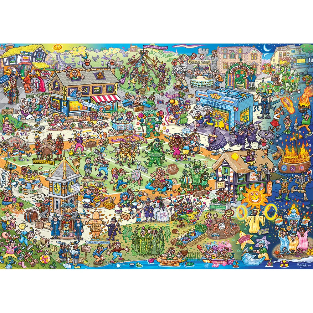 Get ready for a hilarious adventure across Great Britain in Barmy Britain, a 1000 piece jigsaw by Phil Dobson.