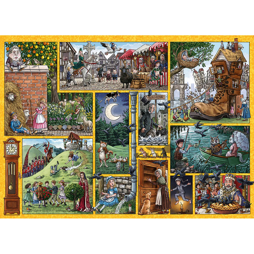 Let the rhymes come to life, piece by piece. Can you name all of the nursery rhymes featured in this puzzle? The answers are hidden inside!