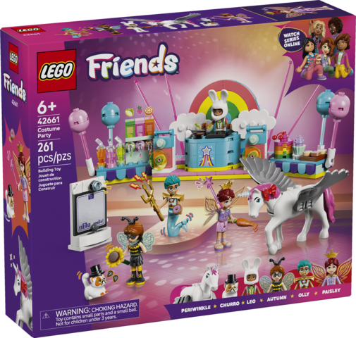 • 4 minidolls and 2 LEGO® animal figures – Get the party started with Autumn, Olly, Leo, Paisley and their pets as they dress up as a bumblebee, merman, magician, bunny, fairy and a unicorn