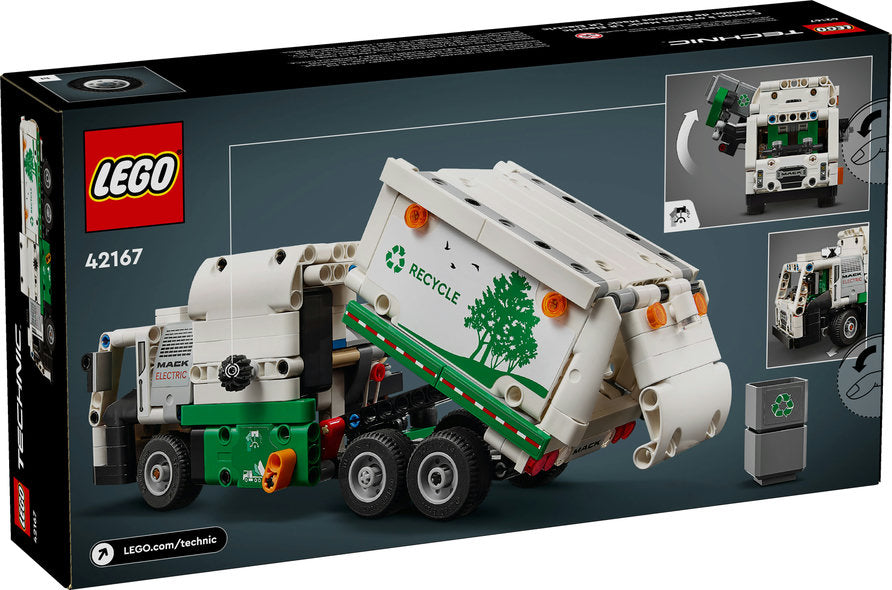 • Truck toy for kids aged 8+ – The LEGO® Technic™ Mack® LR Electric Garbage Truck for boys and girls features a side loader to grab, lift and tip the garbage cans