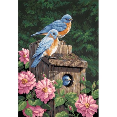 This is the 14" x 20" "Garden Bluebirds" PaintWorks Paint-by-Number Kit from Dimensions. Suitable for Ages 10 & Older.