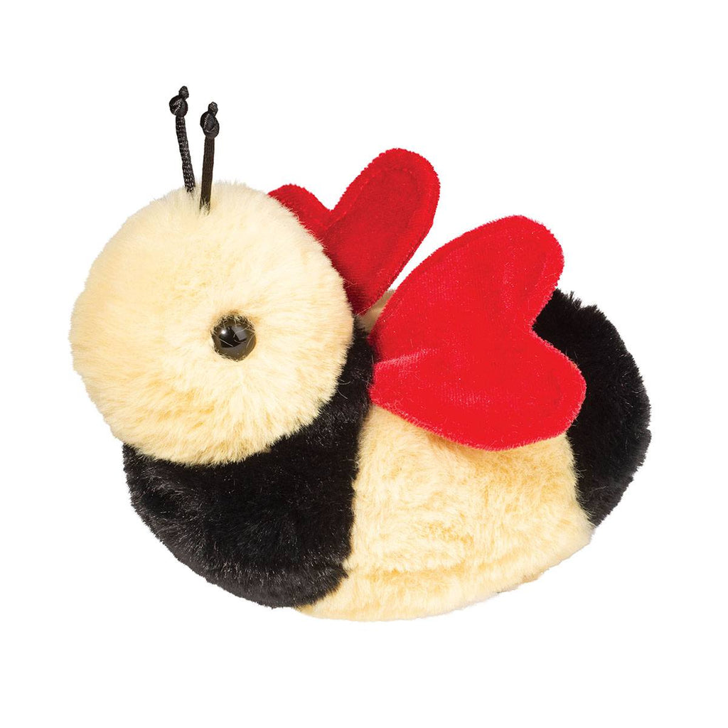 Our sweet Bumble Bee stuffed animal is abuzz with positive vibes! With shiny, dark eyes and adorable knotted antennae, this cuddle bug is brimming over with charm. A special “Bee Mine” message for your Valentine is presented on the heart shaped hang tag, while velvety soft, red heart wings adorn this little critter’s back. Ultra cuddly plush materials in creamy yellow and black colors create this insect’s familiar striped body and beans within lend an appealing cuddly feel. For an endearing way to say you care, look no further than our irresistible Bee plush friend!