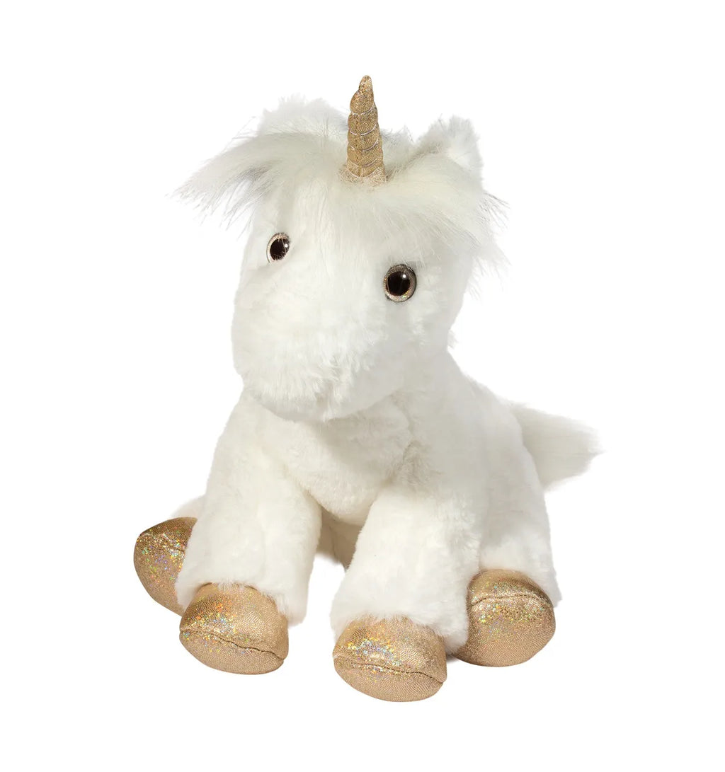 Every little princess needs a magical companion and Elodie the Soft White Unicorn plush is the perfect creature for the job! With a pure white coat of appealingly cuddly plush fur, Elodie practically melts into your hands whenever you pick her up for a hug. The mane and tail of our fantasy filly feature a longer length that will invite Elodie’s new caretaker to brush and groom her. Her hooves and spiraled horn shine with a shimmery, iridescent glow and will capture the imaginations of little girls everywhere. The same pale, golden shine can be seen in Elodie’s wide-eyed expression. Brimming with curiosity and a love for adventure, our enchanting Unicorn stuffed animal will lead the way to creative play!