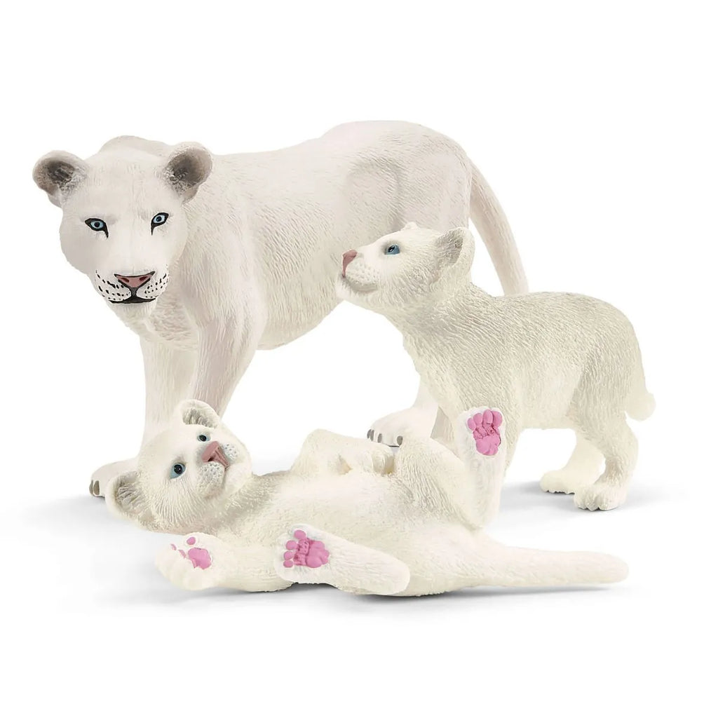 White lions do not generate pigment in their skin or hair. However, like the lion mother with cubs from schleich® WILD LIFE, they are not albino. They don’t have the characteristic red eyes. In the wild these wild cats have the same habitat as other African lions. They live in the savannah, dry forests and semi-deserts, where they hunt antelopes, gazelles, gnus, buffalo and zebras.