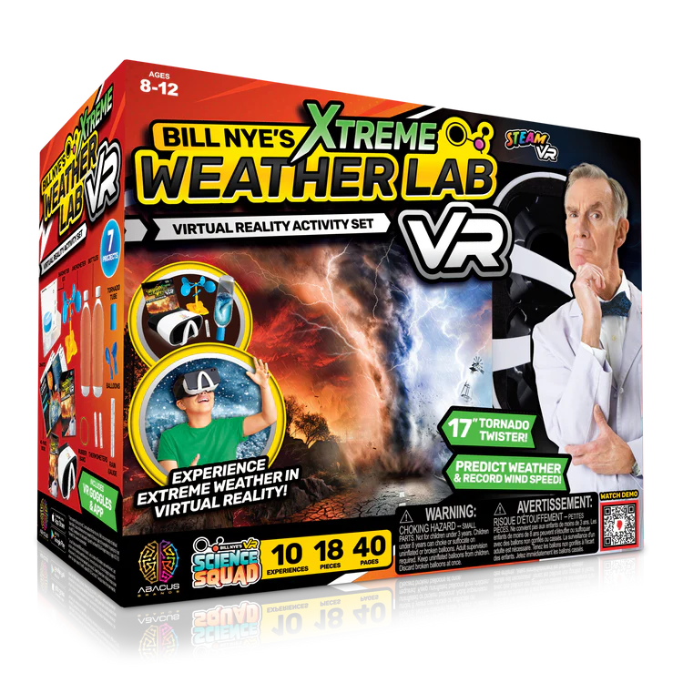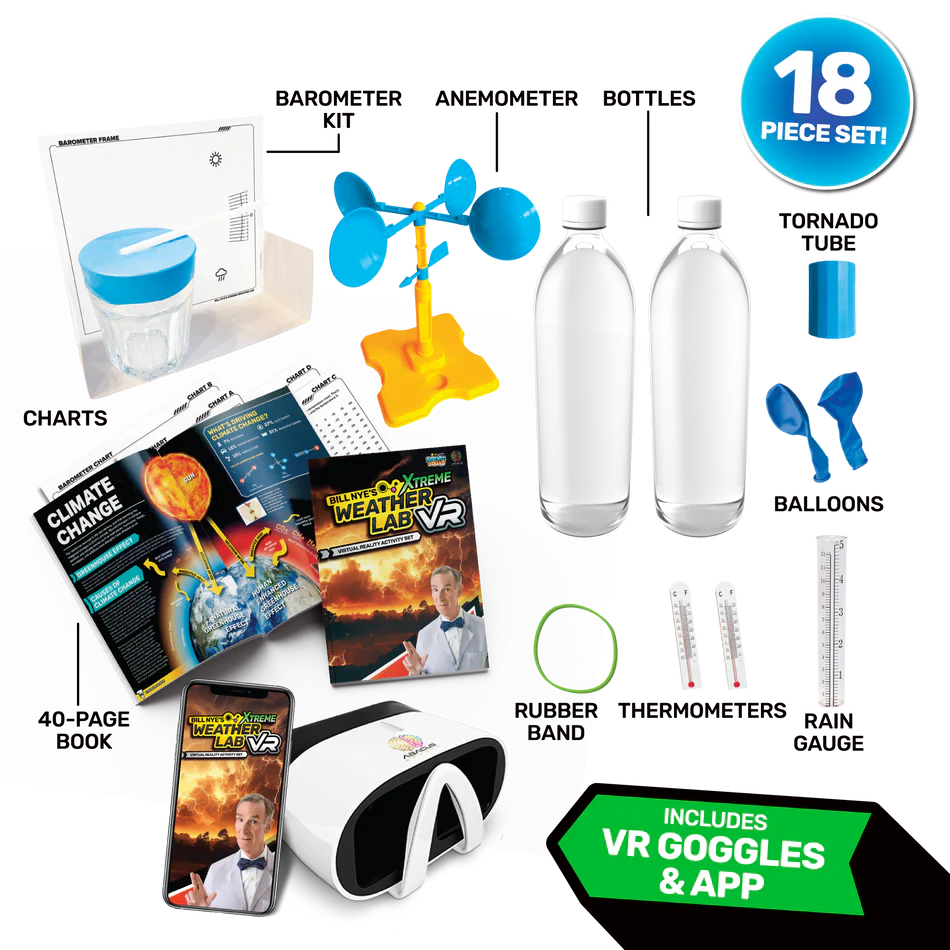 Dive into the world of extreme weather with Bill Nye’s Xtreme Weather Lab VR! Engage in a layered learning experience designed to captivate young minds and enhance content retention. Explore hands-on learning with a fully customizable weather kit included in the set. Uncover the science behind hurricanes, tornadoes, and more with Bill Nye in the included 40-page book.