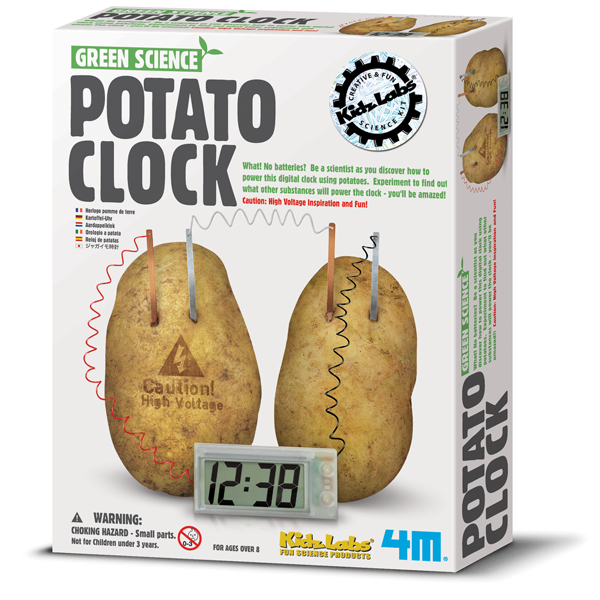 Use your experimental skills to find out which substances will power a digital clock. Includes 1 digital clock w/ wires, 2 pots, connecting wire, transparent tape, copper & zinc strips & detailed instructions. Clock size: 2.5″ x 1.25″.