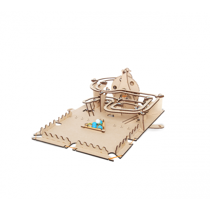 kit is project and game all in one! After assembling the marble slide and the base, play the game!