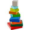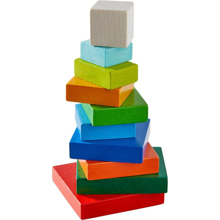An eight-sided rainbow? Yes, you can make one of these with the Rainbow Cubes 3D arranging game. Children can lay them out in patterns or in a colorful jumble. The unlimited possibilities for arranging the colored blocks provide for ongoing entertainment in free play or by reproducing the illustrations. Contents: 10 wooden blocks, 1 ideas booklet. The natural colored cube measures just 1" x 1".