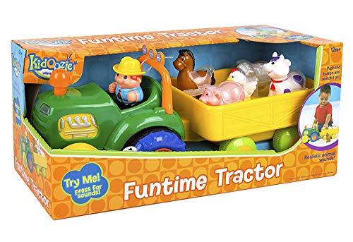 Enjoy the country air and life out on the farm with Kidoozie’s Funtime Tractor! Tractor includes five delightful little animal friends that stand in the trailer and make animal sounds when placed in their appropriate spots. Your little ones can press the funnel to hear realistic engine sounds as the tractor rolls along for 10 full seconds! Aspiring little farmer or fancy minded young one, the Kidoozie Funtime Tractor has something for everyone! Studies show that children's imaginative abilities are most effectively employed when they're given freedom within a specific topic or scenario. Realistic roleplay modeled after real-life "grown-up" tasks is essential for developing critical thinking skills. Inspire growing minds with our adorable and adventure-ready Funtime Tractor. This set is ideal for broadening mental faculties through creative and active play in young children, ideally toddlers and preschoolers. Includes just enough pieces to be engaging without being overwhelming.