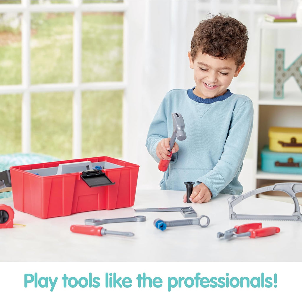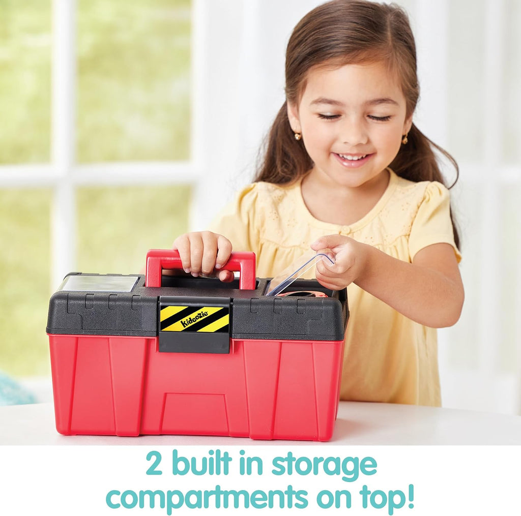 Spark your child's inner handyman or handywoman with the Kidoozie's My First Toolbox! This 19-piece treasure trove brims with realistic tools sized just right for small hands, from a sturdy hammer for pretend pounding to a tape measure for ensuring everything's level. The included toolbox, complete with storage compartments and a secure clasp, keeps everything organized for portable building adventures. As they measure lumber with the ruler, tighten bolts with the wrenches, and assemble creations with the screwdriver and nails, their imagination will soar and essential skills like problem-solving and tool recognition will blossom. So open the toolbox, grab your imaginary hard hat, and watch your little builder construct a world of fun and learning with the Kidoozie My First Toolbox!