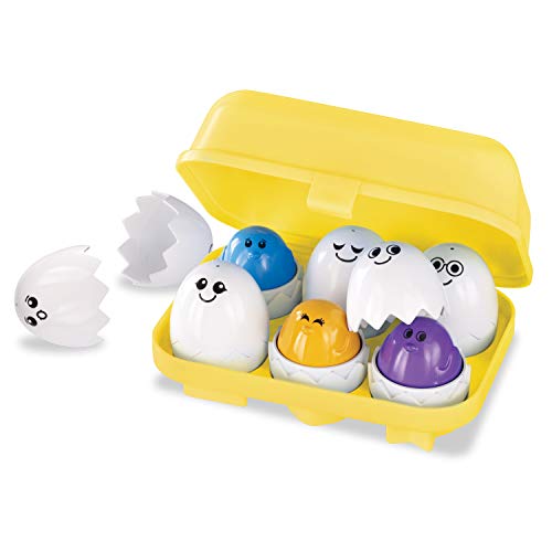 This clever and colorful toy engages small kids in many ways. For one thing, each little chick squeaks when the child presses down on them. For another feature, each space in the carton has a unique shape, so the child can only put the right chick in the right space. Also, each chick has a different facial expression, so kids can learn about emotions.