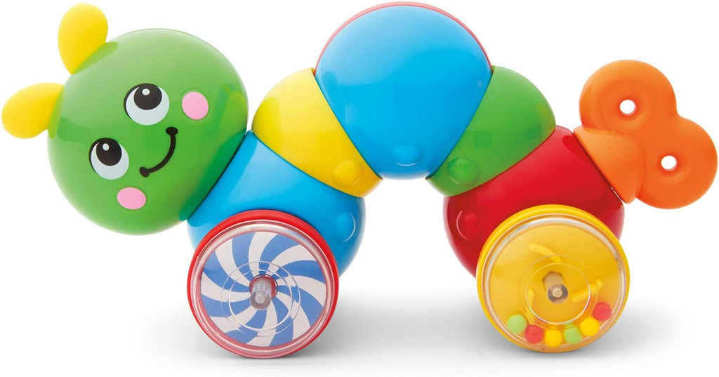 Press down the inchworm's back to extend its body, then release and let it go forward. Your child will have a blast crawling and following this colorful, interactive toy around the room!