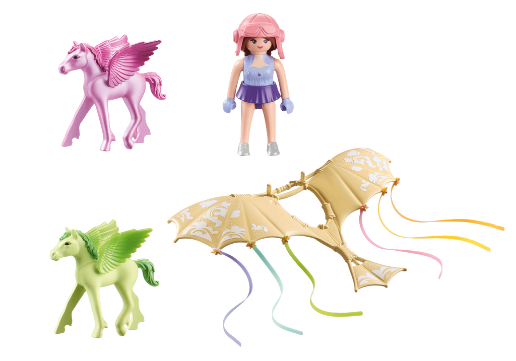 • Charmingly designed princess toy with a PLAYMOBIL figure, two Pegasus foals, a flying glider and other great extras for creative role play