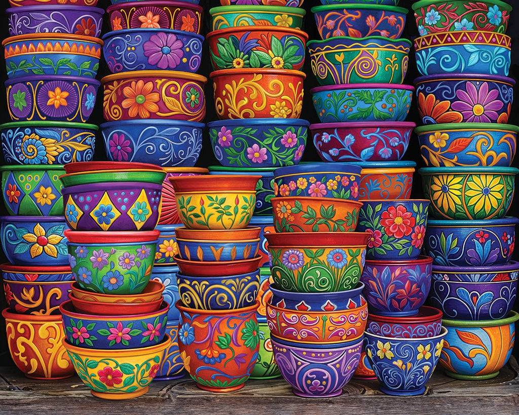Vibrant blues, purples, greens, yellows, and reds combine to create intricate details and patterns that are not only beautiful to look at but fun to assemble in this 500 piece jigsaw puzzle. Finished size of 18” x 24”.