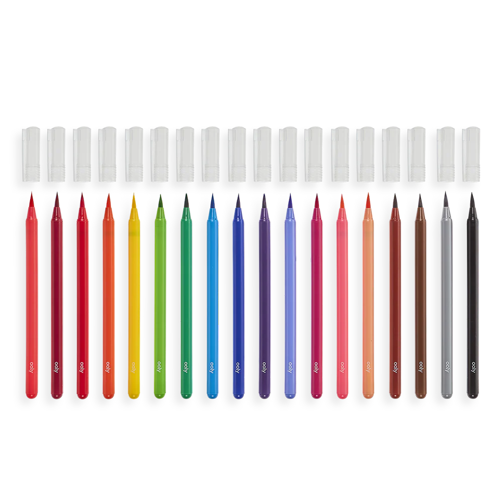Watercolor makers work a lot like watercolor brushes. Try out different techniques like adding water directly to the watercolor marker for a traditional watercolor effect. You can also try adding water to your paper first and then start painting with the watercolor marker for an incredibly organic look. Chroma Blends Watercolor Markers work just like brush markers too when you don't use any water at all. And when you look real close the Chroma Blends brush tips are actually made with synthetic bristles or a true watercolor brush feel.