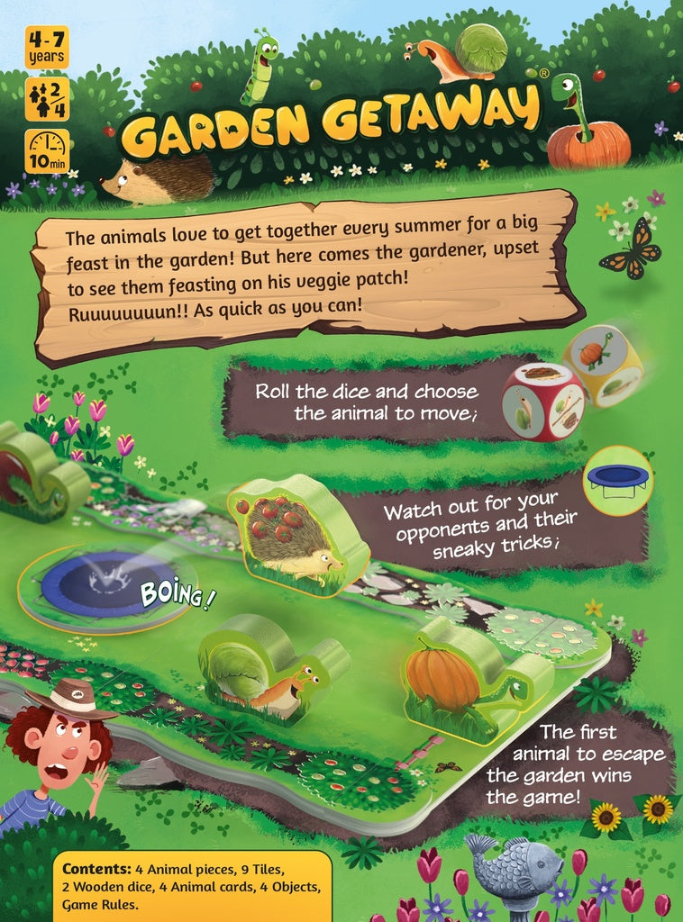 Join the lively gathering of garden animals as they come together each summer for an extravagant feast in Garden Getaway. A surprise awaits them though: the furious Gardener, upset to find them feasting on his veggie patch!